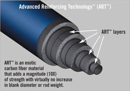 - Công nghệ ART - Advanced Reinforcing Technology - được gia cố bằng nhiều lớp vải carbon, tăng độ chắc chắn lên 10 lần mà không làm gia tăng trọng lượng cũng như đường kính của thân cần.